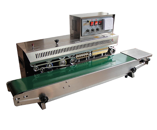 封口機是將充填有包裝物的容器進行封口的機械,在產品裝入包裝容器后,為了使產品得以密封保存,保持產品質量,避免產品流失,需要對包裝容器進行封口,這種操作是在封口機上完成的。一般封口機由機架、減速調速傳動機構,封口印字機構,輸送裝置及電器電子控制系統等部件組成。具有封口牢固、功效高;結構簡單、緊湊,體積小;造型美觀,技術先進,功耗低,操作維修保養方便等優點。